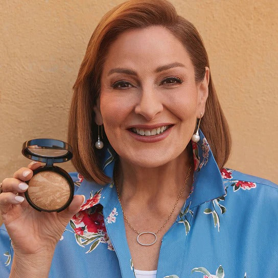 - A baked bronzer for warmth or contouring